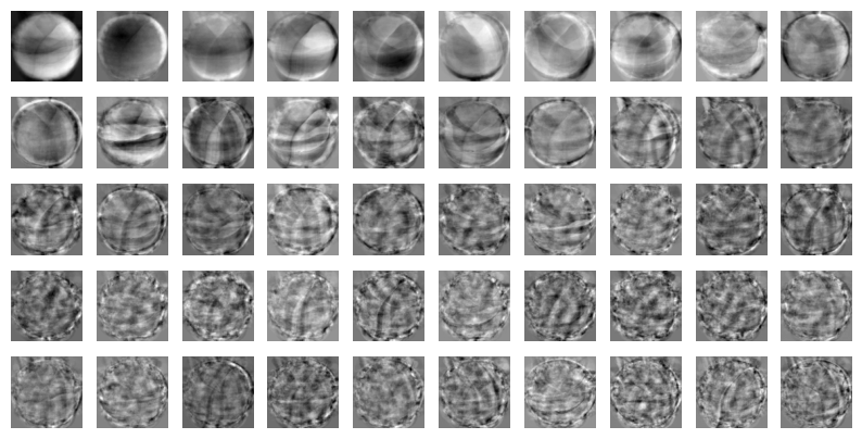 draw_fruits(pca.components_.reshape(-1, 100, 100))