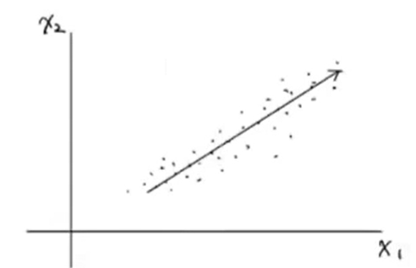 - 일반적으로 데이터의 분산이 잘 되어 있는 그래프에서 분산이 가장 큰 방향을 찾게되면 아래와 같은 선형이 그려진다.