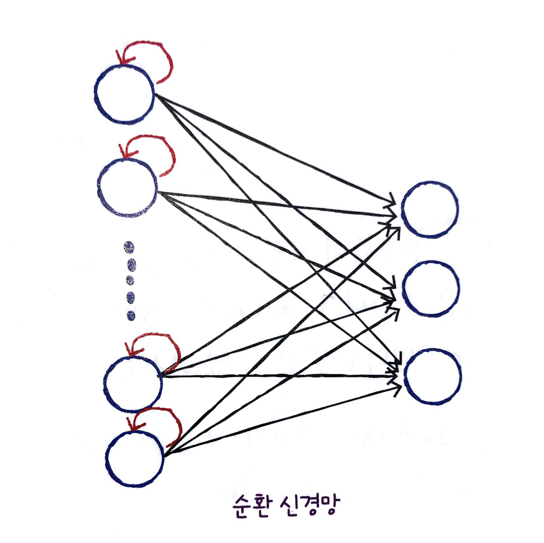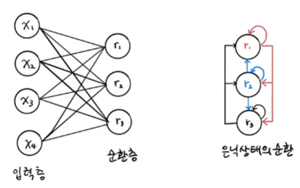 - 입력층과 순환층이 있는 경우 각각 뉴런들은 완전연결된다.