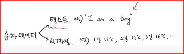 - 순차 데이터(sequential data)란 텍스트 데이터 혹은 시계열 데이터와 같이 특정한 규칙에 의해 순서에 의미가 있는 데이터들을 의미한다.