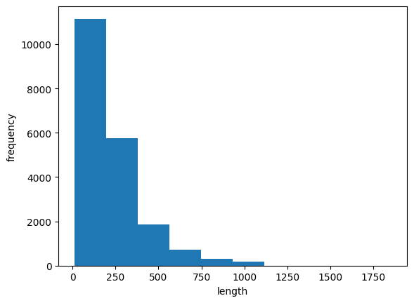 - 대부분 300개 미만의 길이인 것을 확인할 수 있다.