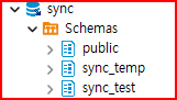 - 테스트를 위해 sync_temp라는 스키마를 만들고 동기화 한다.
