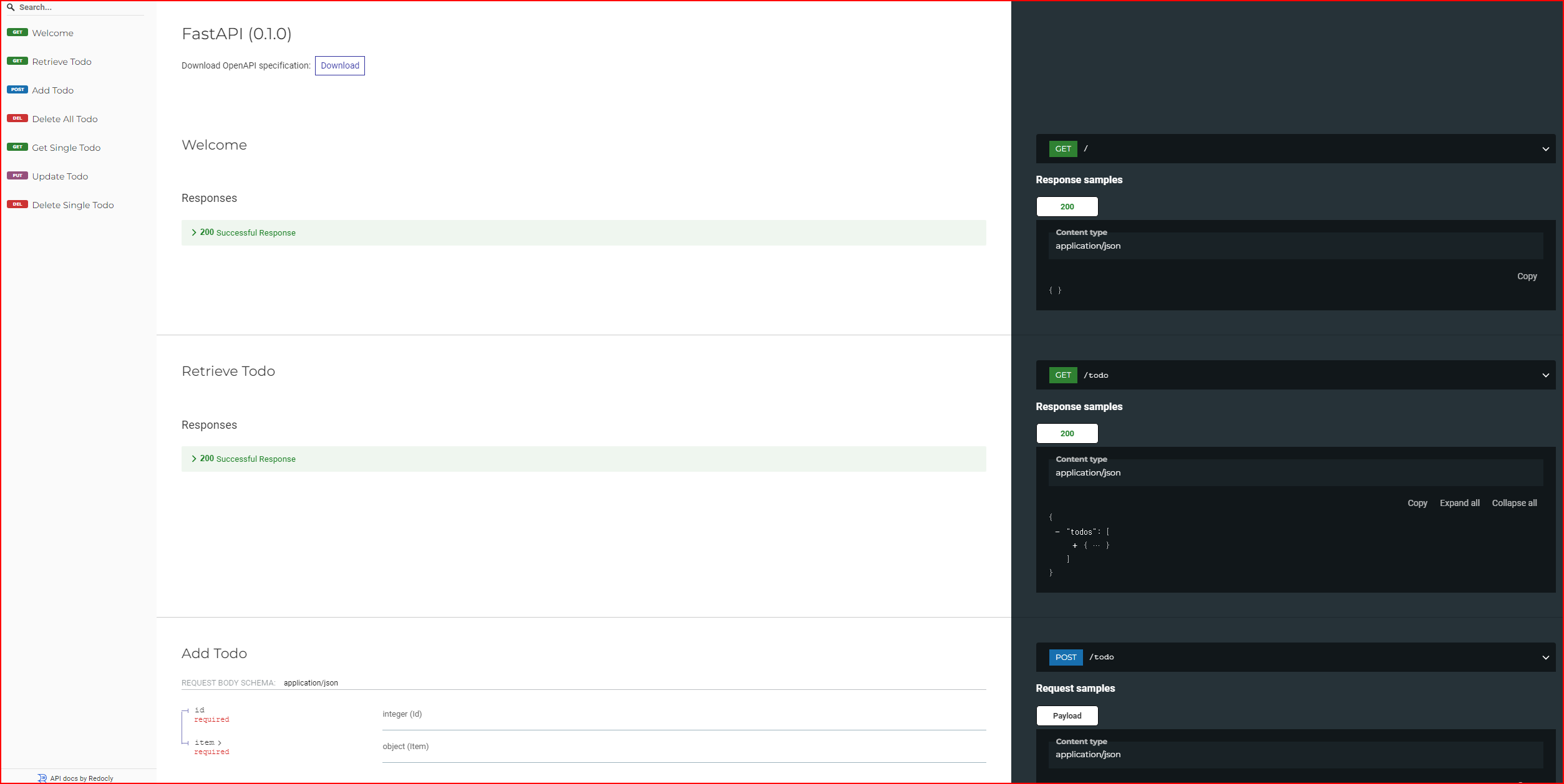 - http://127.0.0.1:8000/redoc 을 접속하여 add Todo를 누르면 아래와 같은 결과를 창에서 확인할 수 있다.