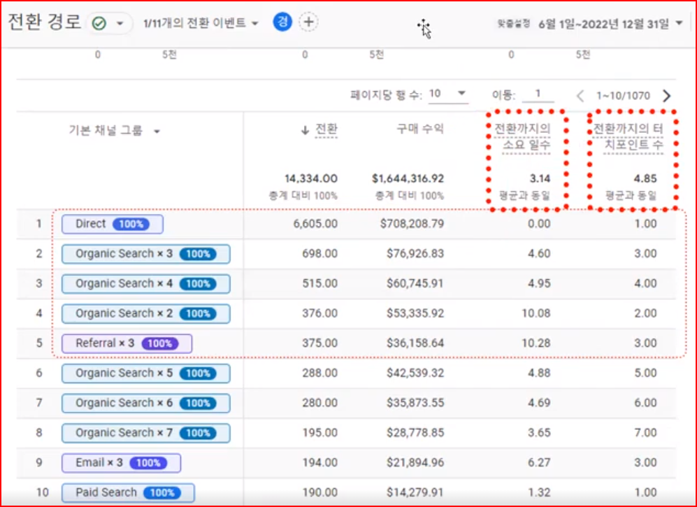 - 위 단계에서 각 채널에 전환률을 누적하여 분석한다.