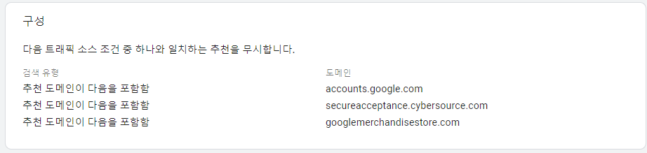 - 결제 모듈이 referral로 나오면, 실재 사용자가 referral로 온 것인지 organic으로 온 것인지 추적할 수 없다. 어떤 채널이 매출이 많이 나왔는지도 알 수 없다. 때문에 이러한 결제 모듈과 관련된 항목들은 제외시켜 줘야 한다.