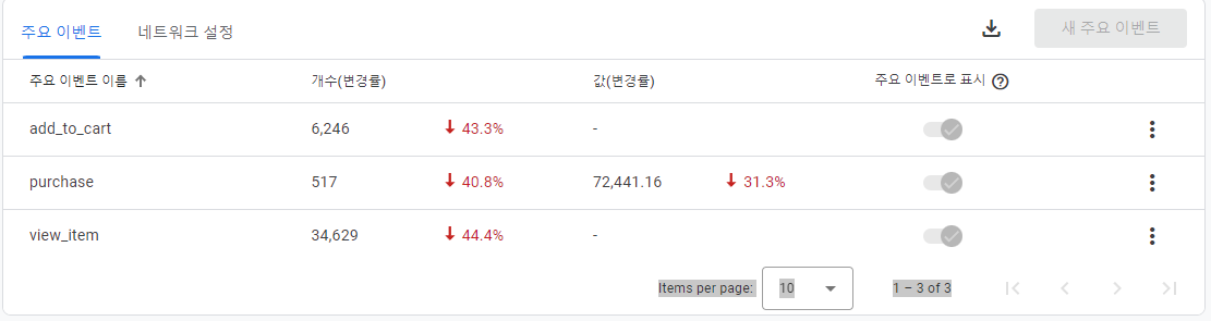 - 강좌의 전환 이벤트는 11개로 확인이 되나, 현재 확인되는 전환 이벤트는 3개로 줄었다.