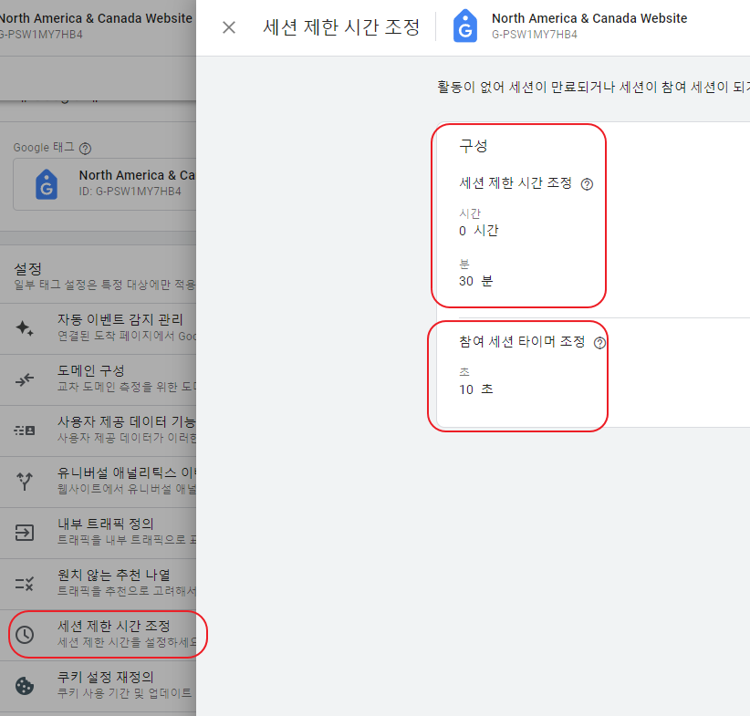 - 세션 제한 시간 조정은 사용자가 아무런 활동을 하지 않는 시간이 계속되어 GA4에서 세션의 종료라 판단하는 기준이 되는 시간이다.
