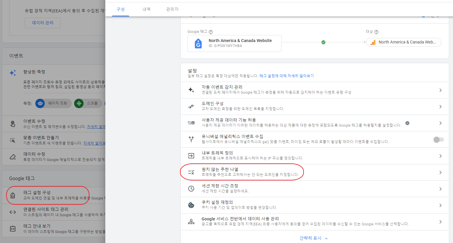 - 상위에서 방문한 태그 설정 구성 내 원치 않는 추천 나열을 클릭한다.