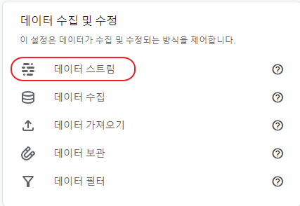 1. 왼쪽 하단 관리 메뉴를 누르고 데이터 스트림을 누른다.
