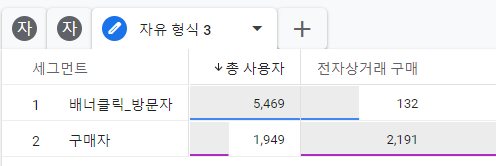 - 배너클릭을 한 방문자 대비 구매자의 수를 확인할 수 있다.
