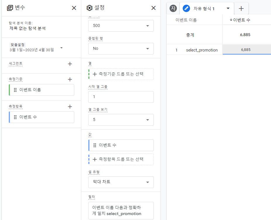 - 이벤트 이름은 이전에 만든 엑셀문서의 이름을 그대로 사용한다.