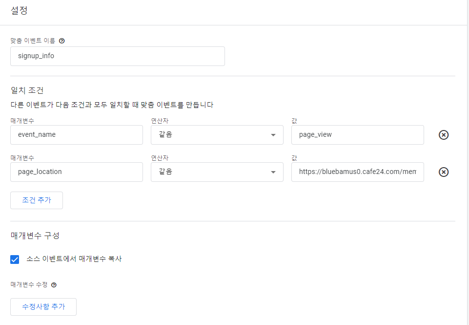 - 향상된 측정의 고급 설정들에는 매개변수를 추가적으로 설정할 수 있는 기능이 있다. 이를 이용해 관리자가 직접 커스텀을 할 수 있다.