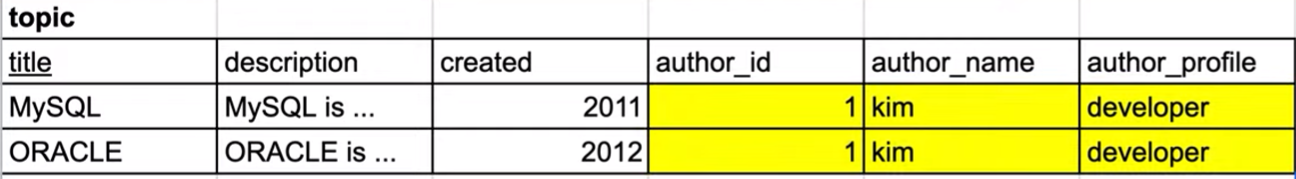 - topic 테이블의 title, created, author_id만 검색하는 경우가 많다