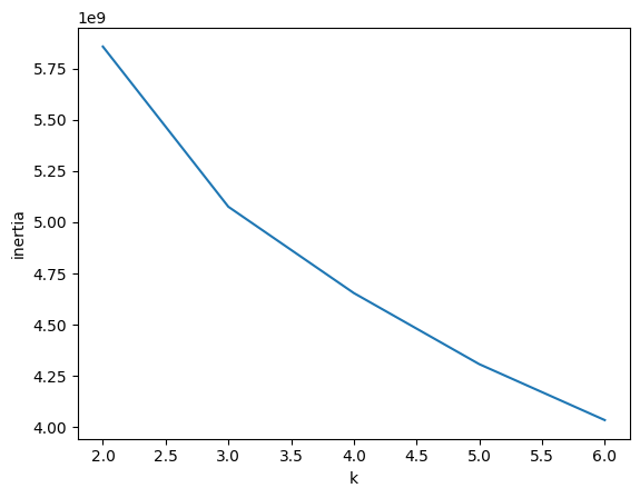 # inertia는 클러스터 중심과 거기에 속한 샘플들간 거리를 제곱하여 합한 값이다.