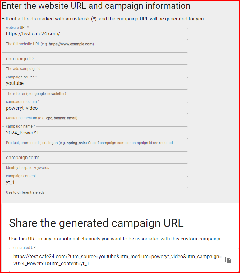 - form에 관련한 정보를 입력하면 하단에 url이 완성되어 제공되어 진다.