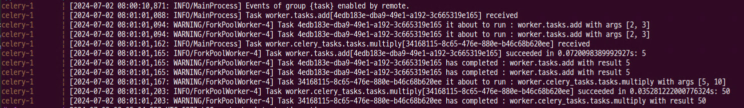 - 이 경우, Celery Flower가 Django 애플리케이션의 상태 정보를 모니터링하기 위해 사용하는 API에 액세스할 수 없게 되어 inspector:44] Inspect method stats failed 에러가 발생한다.
