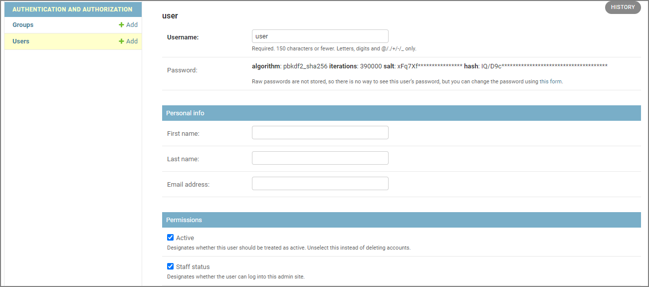 3. 두 명의 수퍼 사용자를 만들고 하나의 사용자 권한 중 superuser status를 Null로 만들고 저장한다.