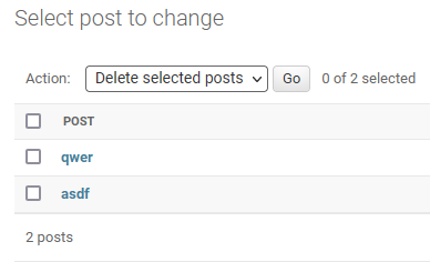 - 상위 페이지에서 삭제하고자 하는 post 선택 후 go를 누르게 되면