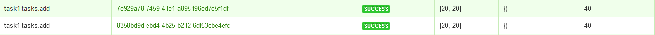- flower의 tasks 탭을 눌러 실시간 모니터링을 확인하면 5초마다 20이란 결과가 출력되는 것을 확인할 수 있다.