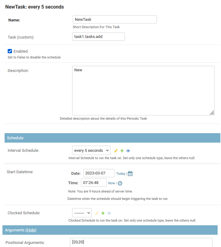 - periodic task에 작업을 새로 생성하여 아래 항목들에 대해서 입력을 해준다.